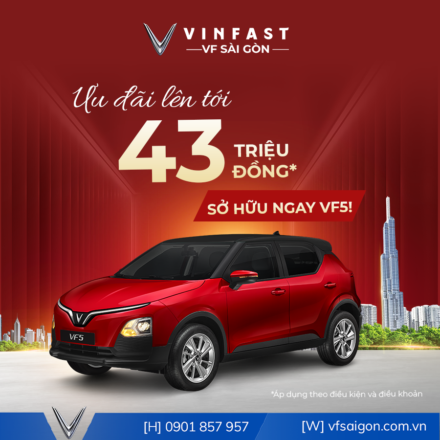 VinFast VF Sài Gòn hân hoan mang đến chương trình ưu đãi đặc biệt dành riêng cho khách hàng trong tháng 09 này. Chỉ với một cuộc gọi, bạn có thể rước ngay chiếc xe điện VinFast thời thượng với hàng loạt quyền lợi hấp dẫn.